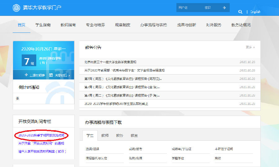 3、点击“2020-2021秋季学期开放交流时间”,进入搜索页面;