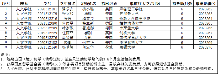 15vip太阳集团官网2023年秋季学期博士生短期出国(境)访学基金拟录取名单公示