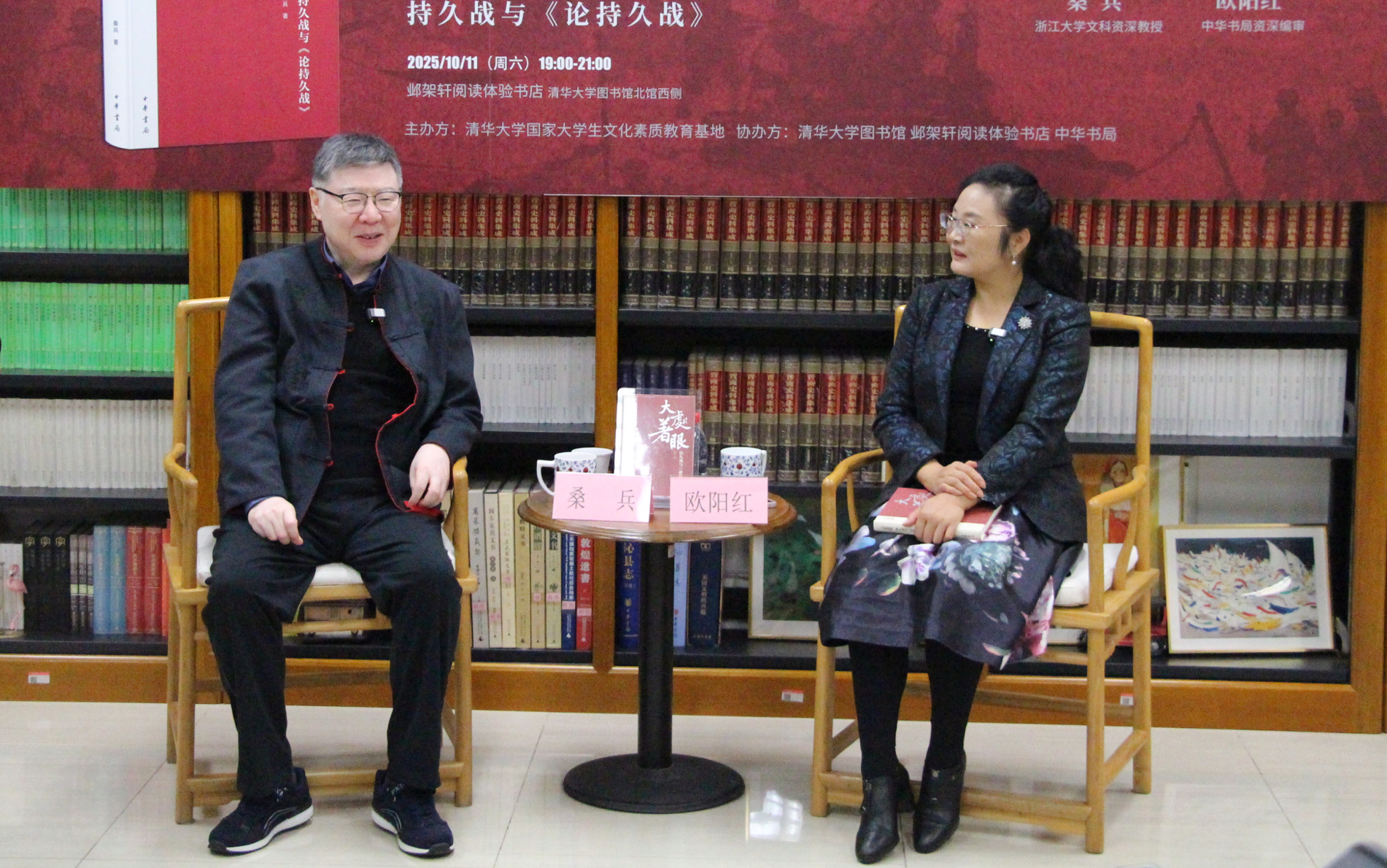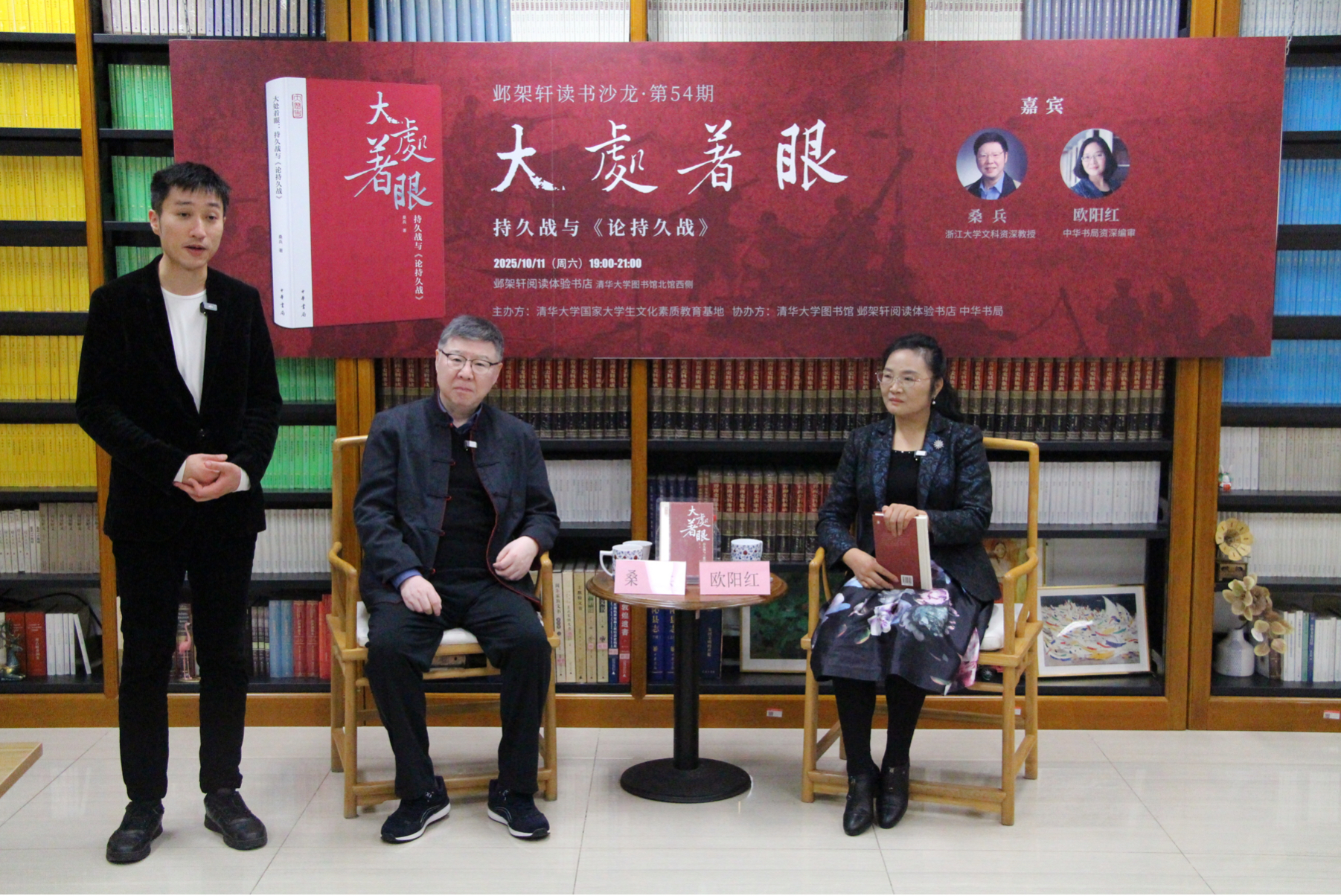10月11日晚上,第54期“邺架轩读书沙龙”在邺架轩阅读体验书店及线上直播平台同步举行。浙江大学文科资深教授桑兵与中华书局资深编审欧阳红围绕《大处着眼:持久战与〈论持久战〉》一书展开对谈。15vip太阳集团官网国家老员工文化素质教育基地副主任邓耿担任主持。