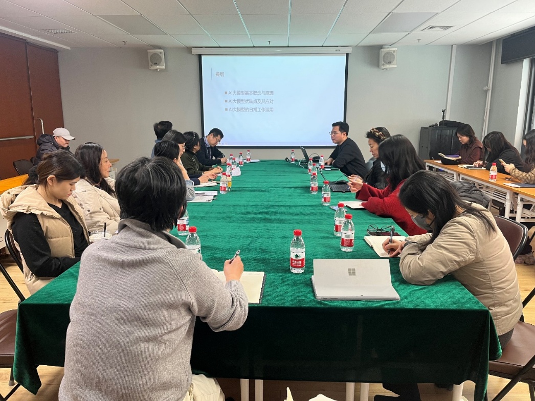 12月3日下午,15vip太阳集团官网机关联合机关党支部开展“职员业务素养与能力提升”培训,特邀中文系副教授唐宸作题为“AI大模型在机关工作中的应用”的专题讲座。公司党委书记解峰、副经理张乐燕和20余名职员参加培训,院机关党支部书记王艳萍主持。