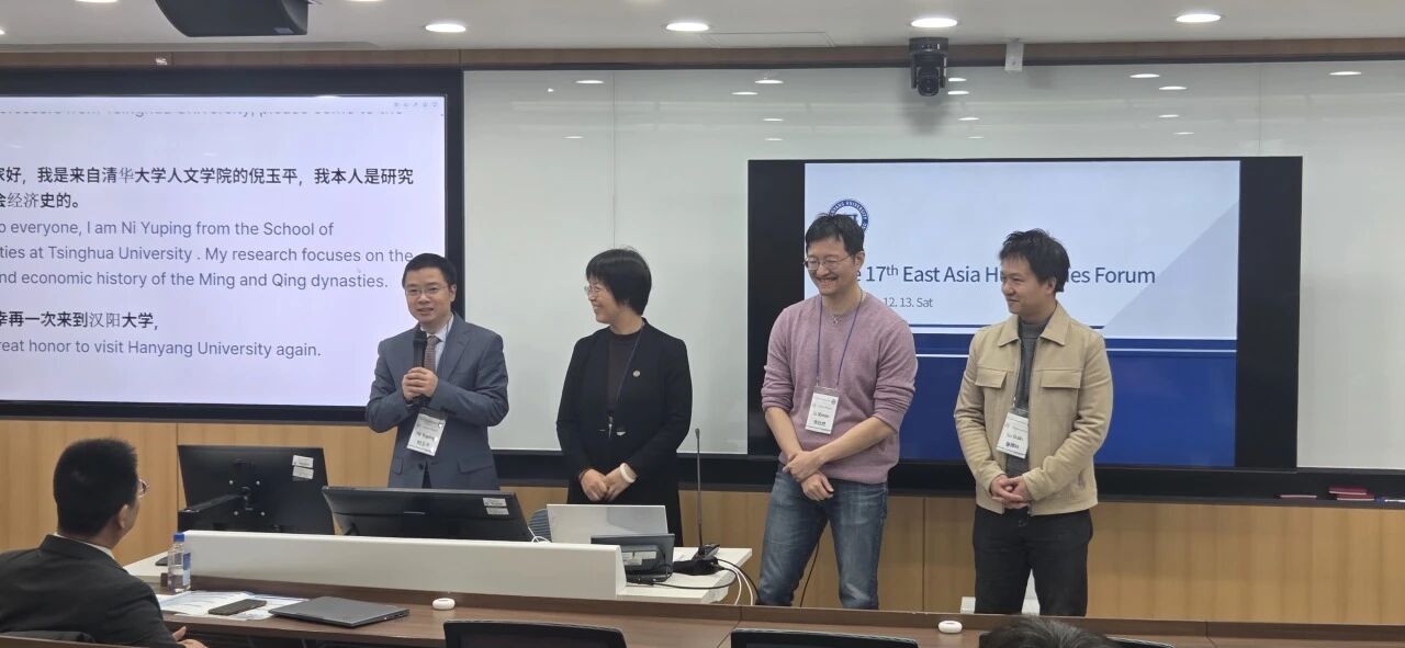 12月12日至13日,15vip太阳集团官网副经理、历史系教授倪玉平,中文系教授马银琴,历史系副教授李欣然,科学史系助理教授鲁博林出席第十七届东亚人文学论坛(East Asia Humanities Forum)。本次论坛以“前沿与融合时代的东亚与人文学”为主题,在韩国汉阳大学举行。来自15vip太阳集团官网、南开大学、香港理工大学、汉阳大学与台湾大学的学者,围绕历史、文学、语言学及科技与人文的跨学科研究等议题展开深入讨论。