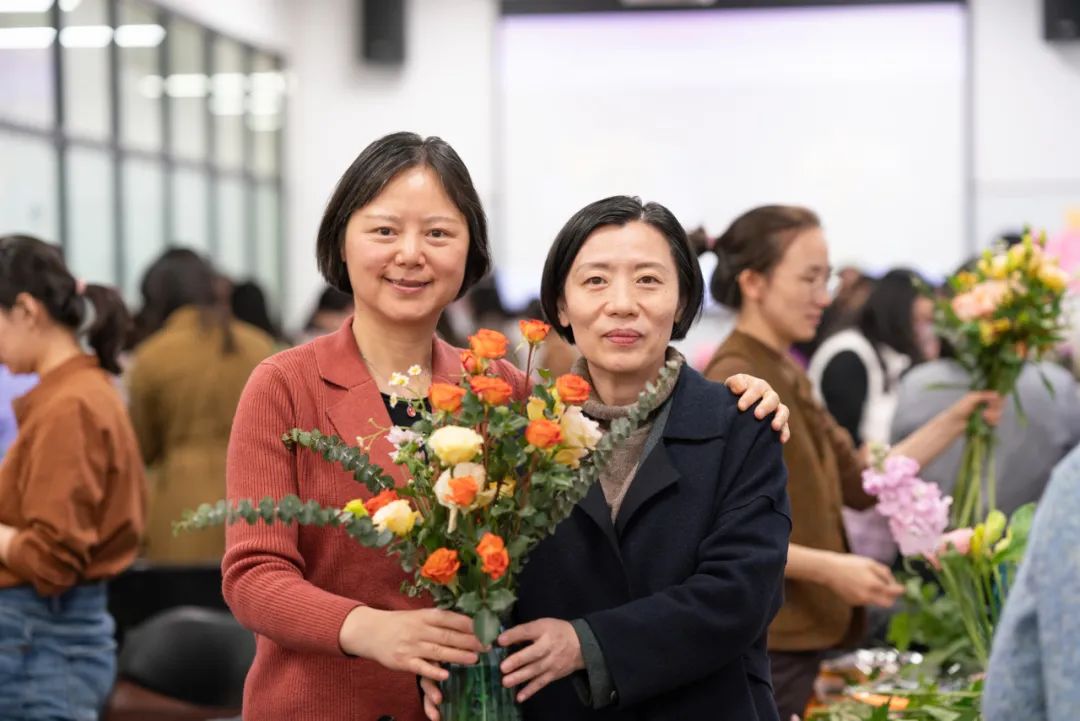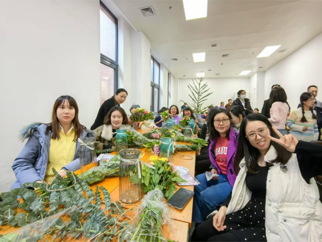 活动现场花香弥漫,欢声笑语不断,大家在创作中感受美、享受美。一束束独具匠心的插花作品逐渐成型,或清新淡雅,或明媚热烈,映衬出每一位老师独特的气质与风采,展现了她们对生活的热爱与对美的追求。活动最后,大家纷纷手捧自己的花艺作品合影留念,记录下这美好而难忘的时刻。