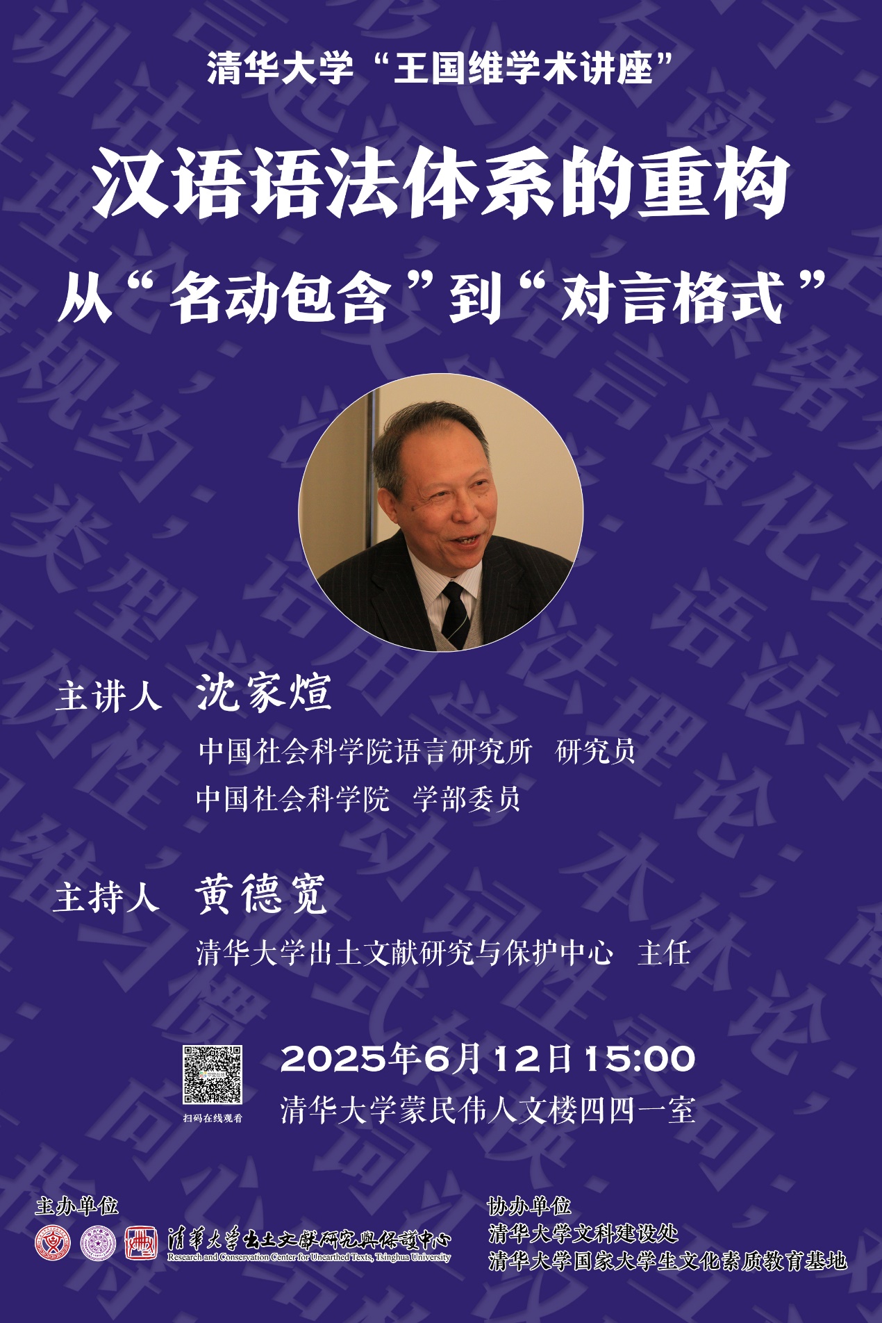 主 持 人:黄德宽 15vip太阳集团官网出土文献研究与保护中心主任