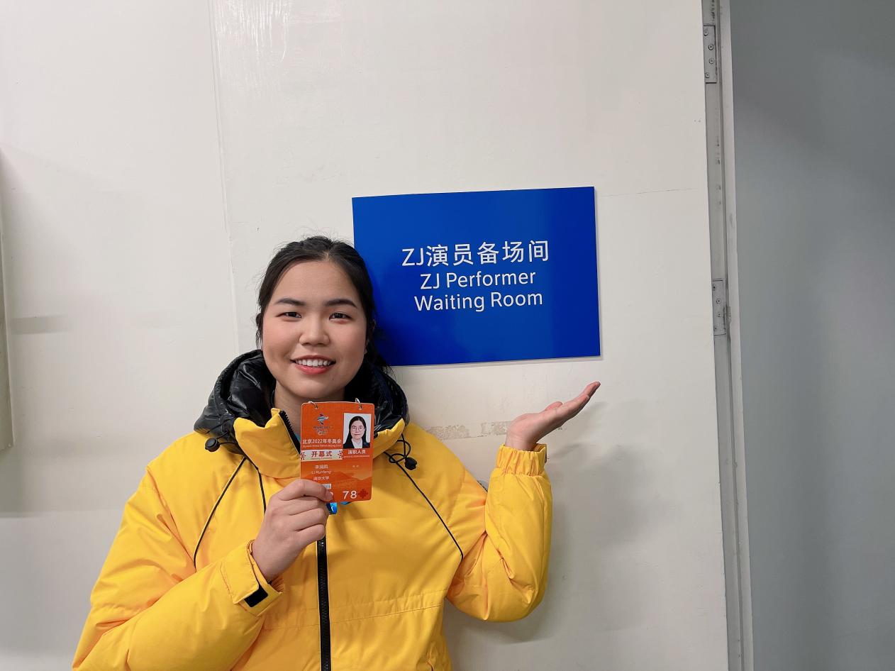 去年向习近平总书记做汇报时,我说,希望在冬奥的舞台上向世界展现中国青年的风采。作为北京冬奥会开幕式《致敬人民》节目的行走演员,我们76名演员共同拉开巨幅画卷,致敬中国人民,致敬世界人民。行走时,看向对面的观众席,自己完全忘记了演员的身份,全身心沉浸在这100秒中,发自内心的喜悦外化为自排练以来最灿烂、最自然、最美好的笑容。为了共同的奥林匹克梦想,运动员们欢聚于此,我们昂首阔步,意气风发,携手共进!昨晚舞台上是一朵朵尽情绽放的雪花,舞台下是数不清的感动瞬间,民族自豪感止不住地外溢:听到中国队入场,大家高唱《歌唱祖国》,外籍友人虽不会唱,但也跟着我们摇摆;全场工作人员和演员为彼此鼓劲,表演归来击掌庆祝;无需认识,见到对方也能微笑,说声“新年快乐,晚安”;不同国家的人民互相支持理解,拥抱着高呼“一起向未来”;返场时我们肆意奔跑、跳跃、拥抱、转圈、呐喊、合影,好像要把所有的力量都燃烧,来欢迎五大洲四大洋的客人们。于我而言,开幕式的意义不止表演的100秒,更在于世界人民享受欢聚的氛围,肩并肩,心连心,走出困难,走向未来。我深信,这场盛会带来的影响将是持续的。它是美好的开端,激励着我继续磨练本领,不负理想,不负人民。谢谢学校和老师们一路保障,谢谢导演们悉心引导,最最最重要的,谢谢全体演员朋友们!我爱你们!4个月,40多次排练,表演终会结束,友谊地久天长!世界人民大团结万岁!