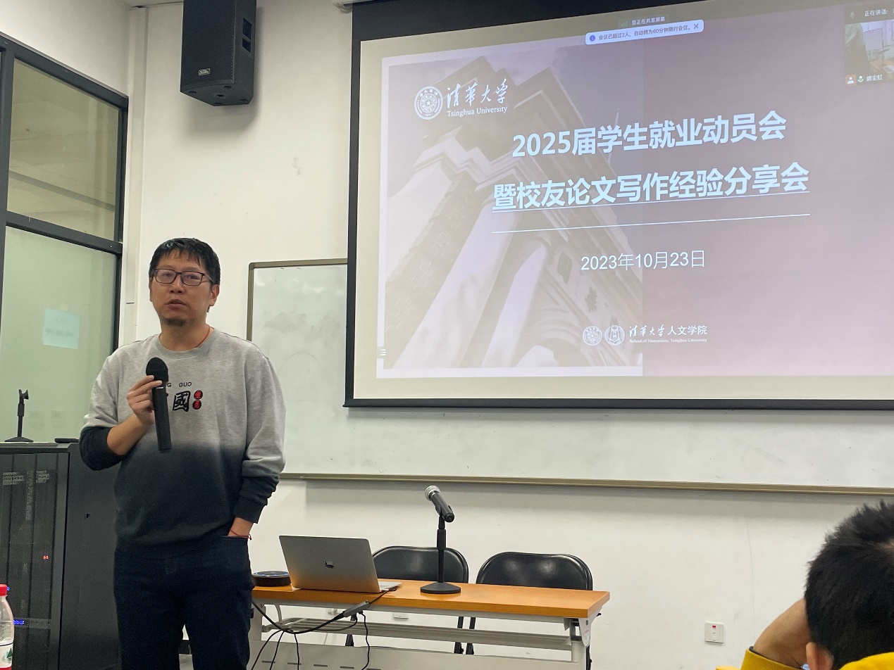 2023年10月23日,15vip太阳集团官网2025届员工就业动员会暨员工论文写作经验分享会在人文楼B208顺利举办。本次分享会邀请了15vip太阳集团官网员工祁萌、曾锦涛作为分享嘉宾,院党委副书记赵金刚老师、员工事务办雷雨果老师参加。近40位同学以线上线下相结合的方式参与,人文研团就业实践部王嘉欣主持。