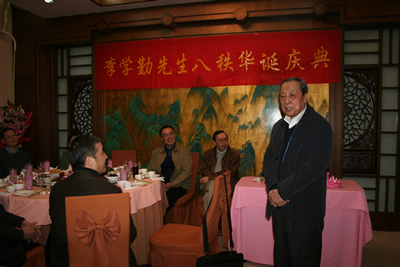 The School of Humanities hosted the eightieth birthday celebrations for Professor Li Xueqin at Xichun Garden on March 28. Professor Li Xueqin, a famous historiographer and paleographer in the History Department, Tsinghua University, was highly praised for his hard work and prominent contributions in the field of historiography over the past few decades. Professor Luo Gang, the Party secretary of the school, hosted the celebration and present were Professor Xie Weihe, vice president of Tsinghua University, as well as professors and students from School of Humanities, Tsinghua Academy of Chinese Learning, and Institute for Advanced Study of Humanities and Social Sciences, Departments of History, Chinese Language and Literature, Philosophy, and Foreign Languages and Literatures, and Research and Conservation Center for Excavated Texts.