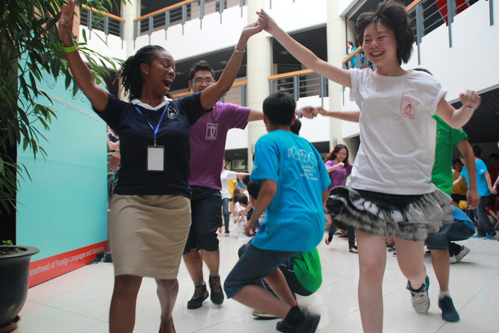 Tsinghua University’s seventh English summer camp is now in session. This three week program will use interactive lessons with native speakers to improve the spoken English of more than 2,000 Tsinghua students. Last week, 150 foreign teachers and volunteers arrived from the United States, United Kingdom, Canada, Ireland, France, Germany, New Zealand, Australia, and Catalonia. They joined 130 volunteers from Tsinghua and Hong Kong Polytechnic University for orientation before the camp opened Monday, July 1, 2013.